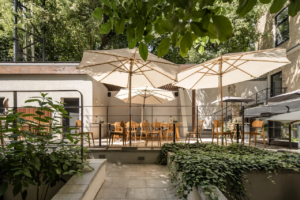 Затишне тихе подвір’я, де можна зібрати друзів на приватну вечерю. Величний розлогий горіх у центрі саду пропонує відпочити у його тіні на літній терасі. А комунальний стіл нагадує, що найкращий досвід – той, яким ділишся з близькими.