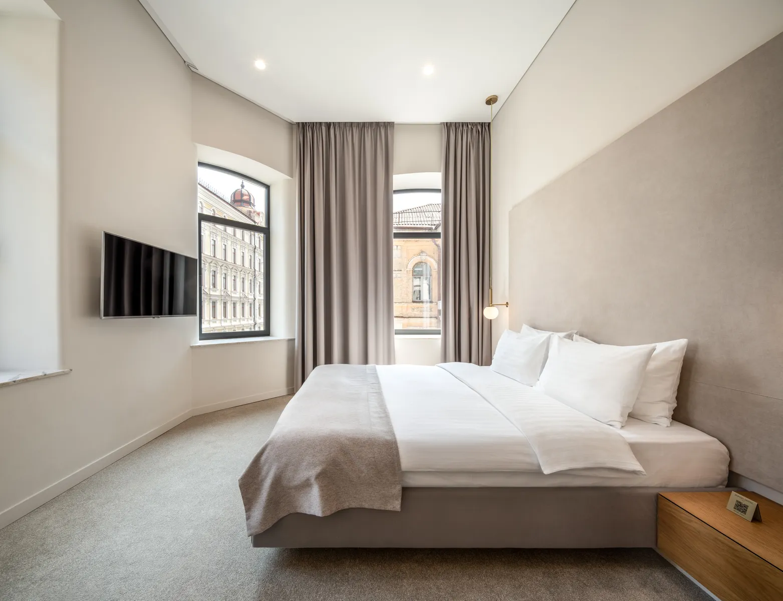 Просторий і світлий номер ідеально підходить для тих, хто любить спостерігати за життям міста. На кожному поверсі готелю — власний Kyiv Corner, який показує місто за вікном з неповторного кута зору.